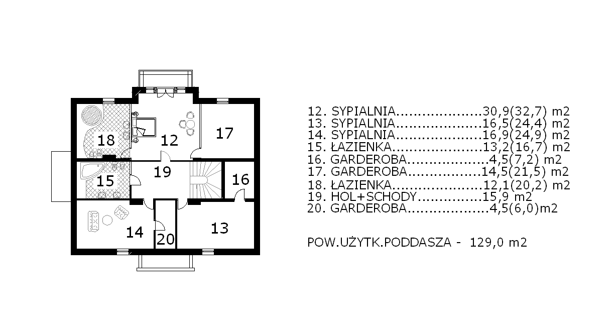 - 12. SYPIALNIA....................30,9(32,7) m2